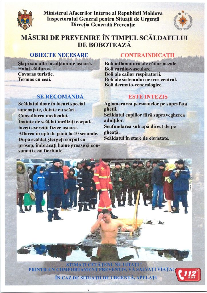 ATENȚIE! Măsuri de prevenire MĂSURI DE PREVENIRE ÎN TIMPUL SCĂLDATULUI DE BOBOTEAZĂ MĂSURI DE PREVENIRE ÎN TIMPUL ACTIVITĂȚILOR PE GHEAȚĂ